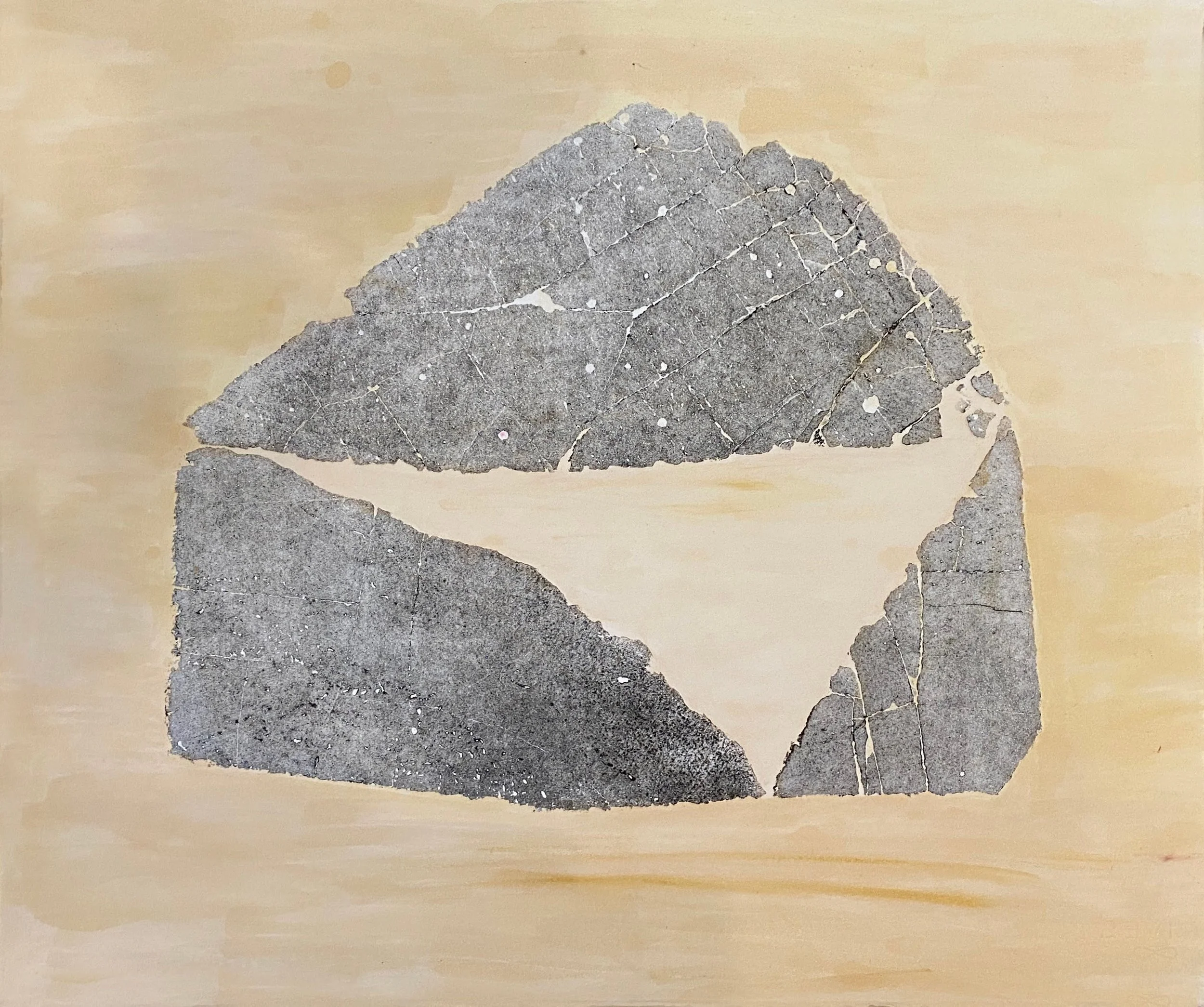 Though directly made from and motivated by robust and enduring natural phenomena, Samimi’s works are fragile in effect. His paintings (see Traces, Window and Emergence Light with Emergence Dark) evoke a whispered movement in their materiality, delicate Japanese mulberry paper - and in their form, gentle, simplified and rhythmic strokes of his paintbrush. Evocative of the fluctuations and stillness of ocean swells or rain patterns, the composition reverberates the artist’s recurring movements of arm with paintbrush. Samimi’s controlled cuts into stone (see Reading Stone and Centered) are regular and irregular, simultaneously giving a sense of tension, unity and continuity. Is there significance in the duality of persistence and temporality in Samimi’s materials, and what emerges from the to and fro between them? In what way is a simplified gesture the representative of these themes in its own right?