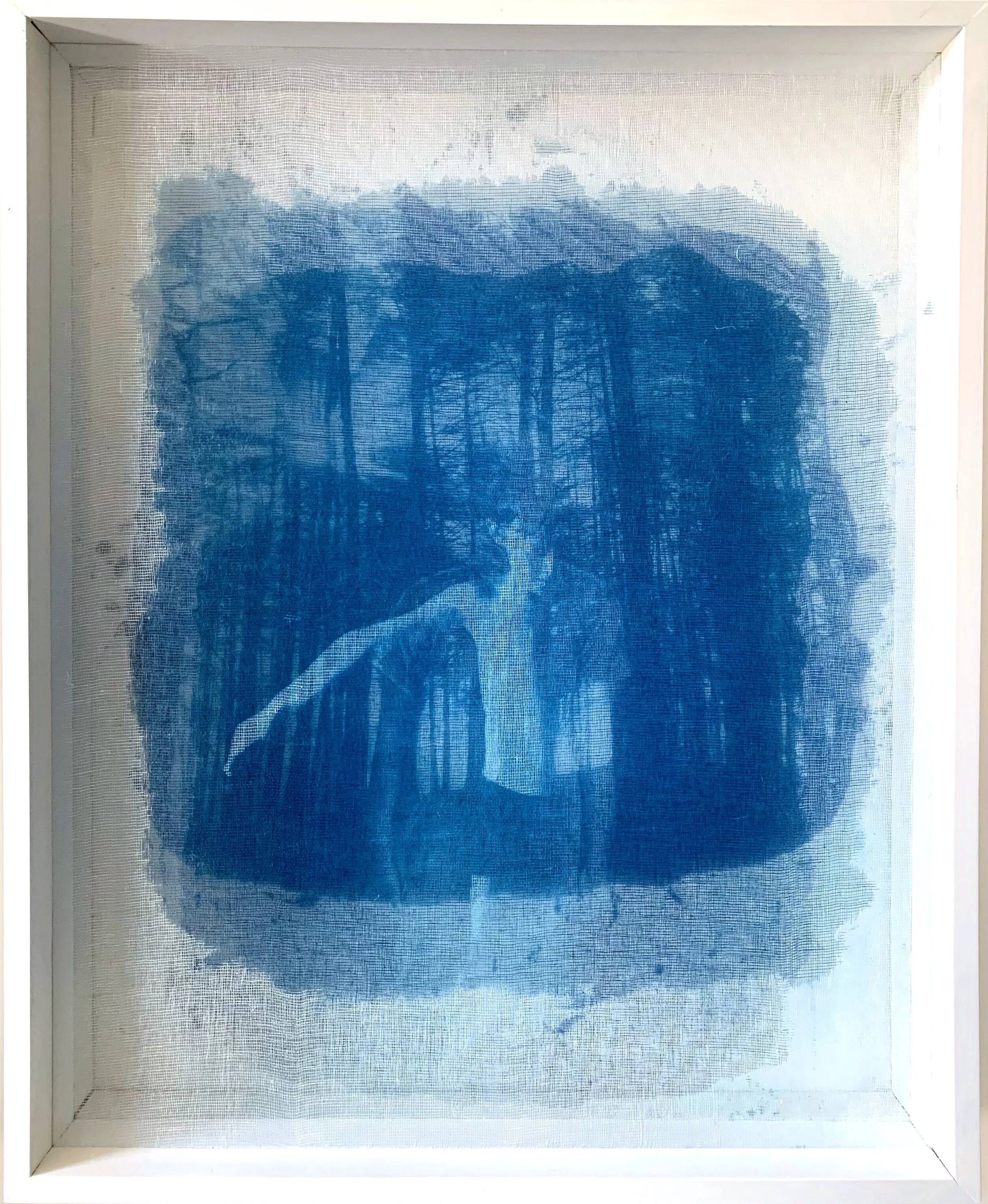 Summer Mei Ling Lee, Into the Nearness of Distance XVII, 2020, Cyanotype, Three layers of Cyanotype and gauze, wood, 26.5” x 33” x 4.5”.